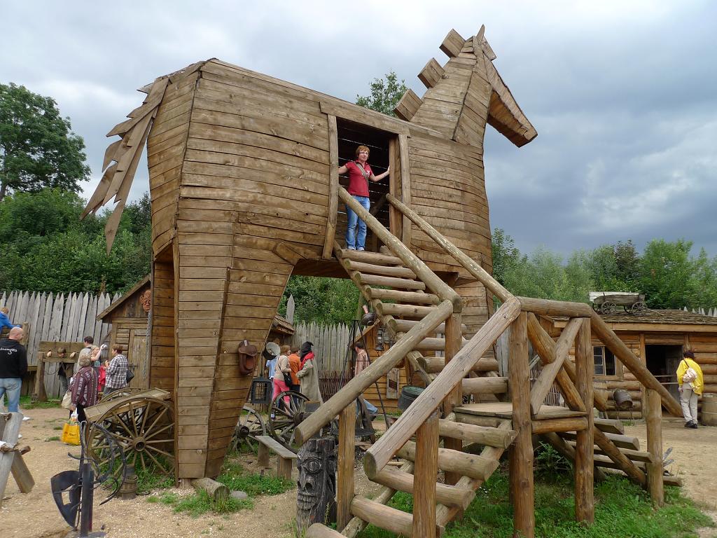 Proponujemy następnie zwiedzanie i poznanie tajników rycerskiego rzemiosła w replice średniowiecznego grodu - możliwość przebrania się za rycerza, strzelanie z łuku, wejście do konia trojańskiego itp. Spojrzenie na okolicę z oczu i ust gigantycznego styropianowego skrzata stanowi nie lada gratkę... Niezwykłe przeżycie czeka także wszystkich, którzy wejdą do wnętrza zrekonstruowanej na wzgórzu Arki Noego (NOWOŚĆ!).